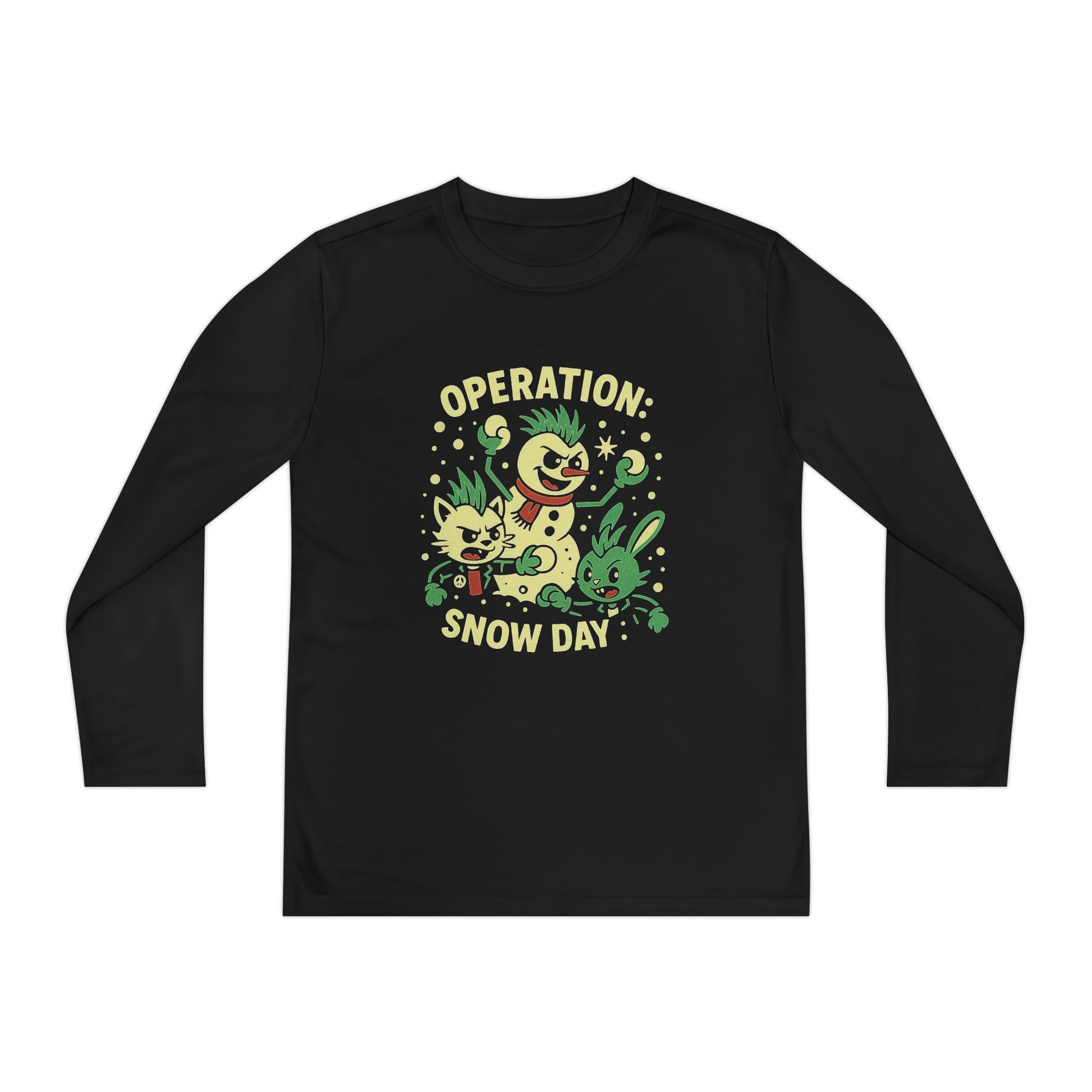 Packed with bright glow-friendly lines and vintage punk attitudes, this design turns every cold morning into a mission. Whether school’s canceled or not, this shirt screams: “We’re making the most of today.”