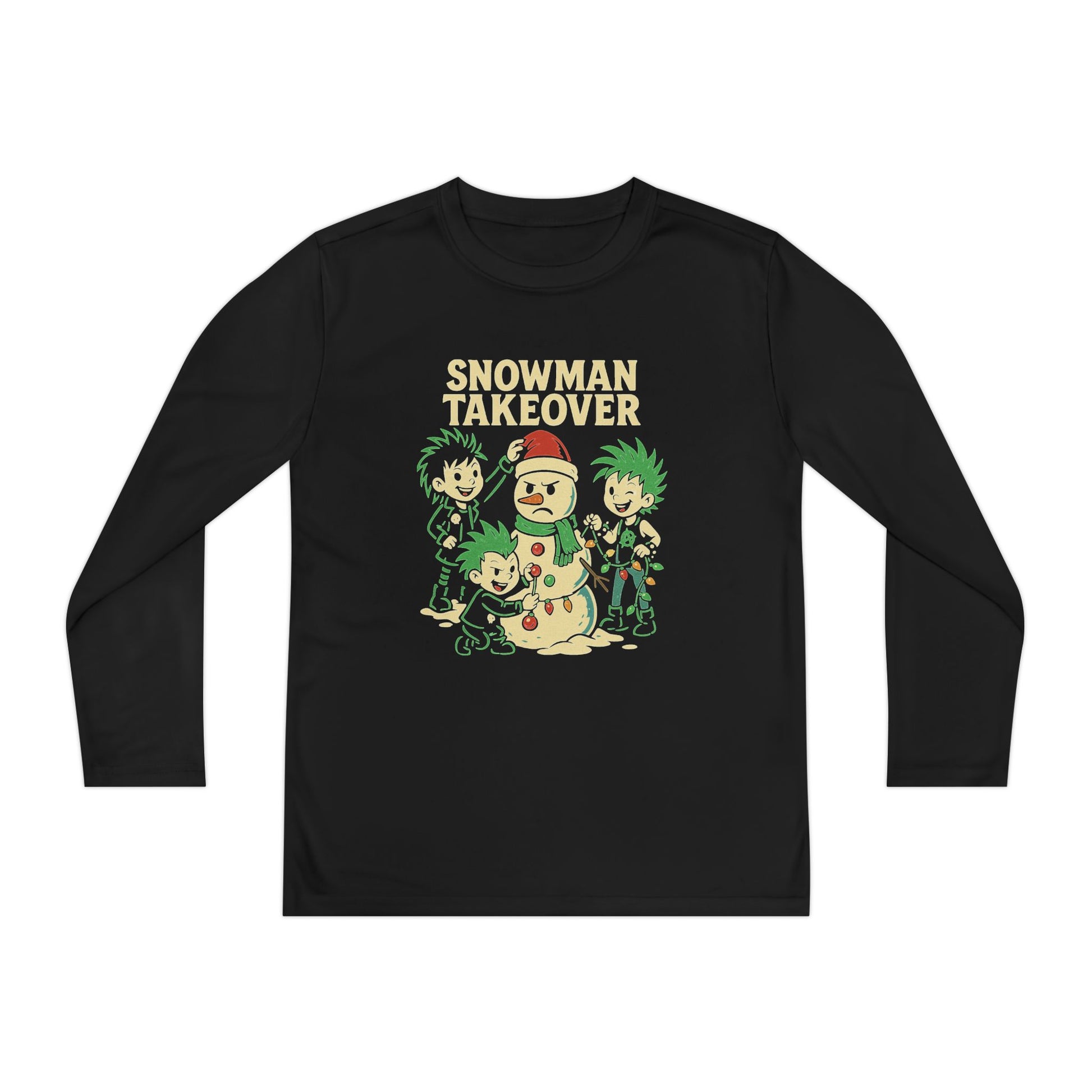 This tee catches the exact moment the kids stage a full-on winter coup: one swapping the hat, one wiring the snowman with glowing lights, and another jamming ornaments into place while the world’s grumpiest snowman silently questions all his life choices.